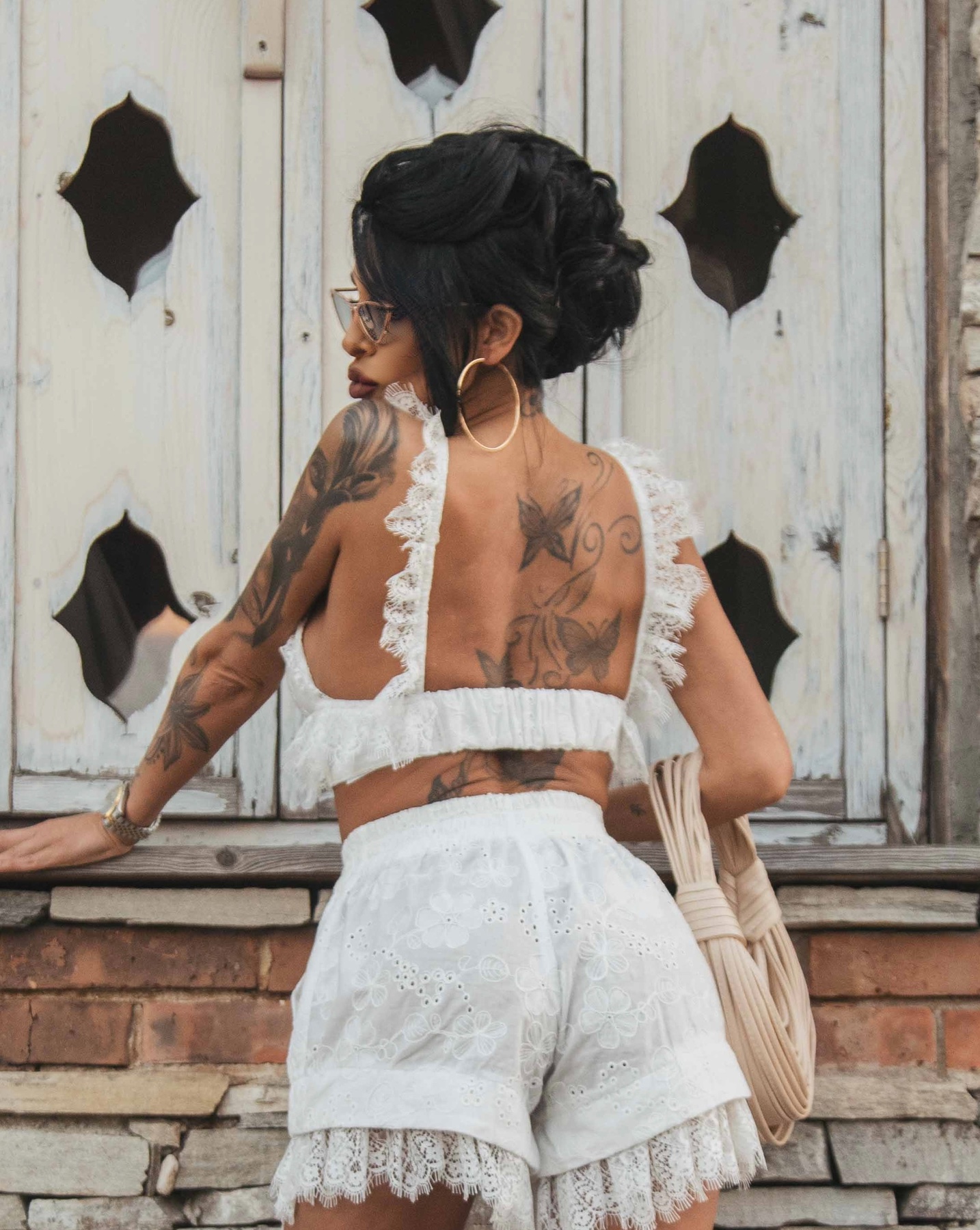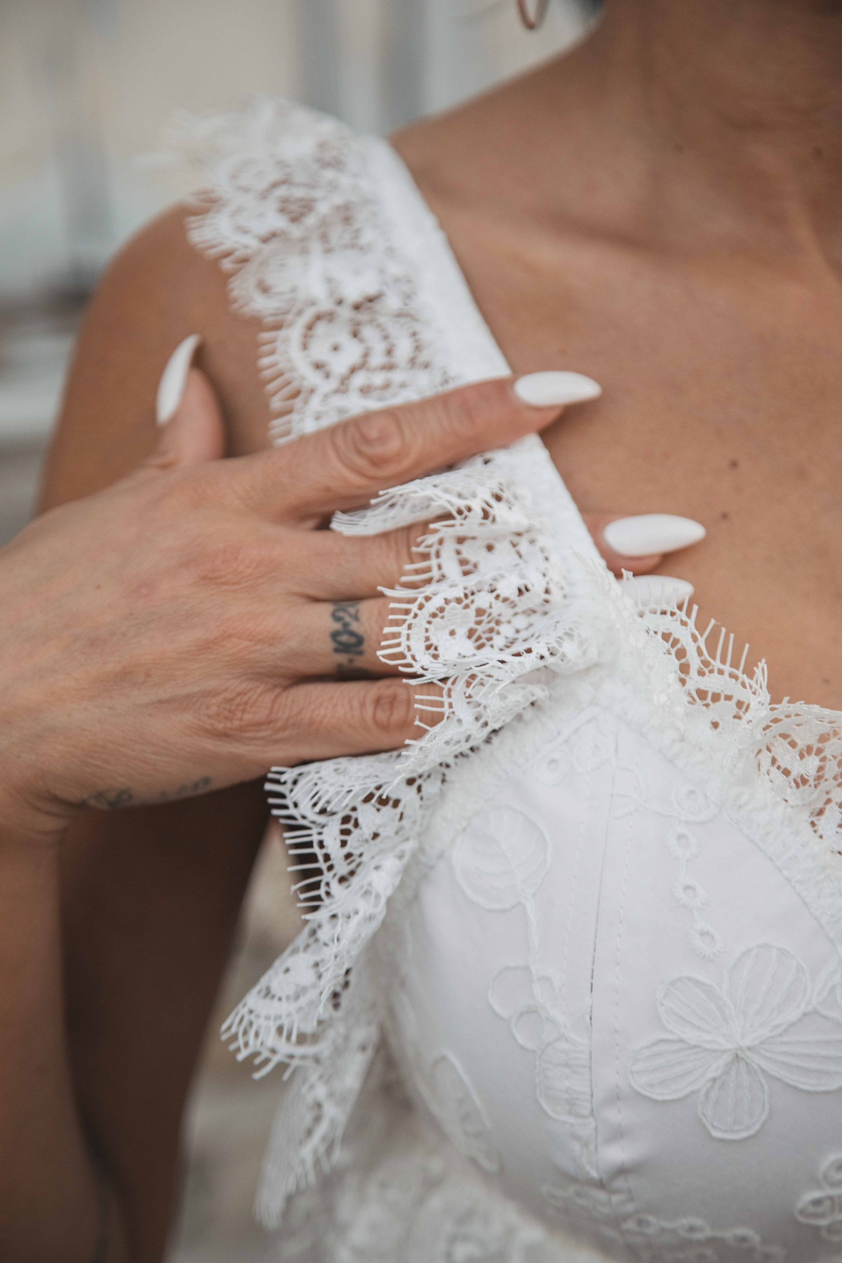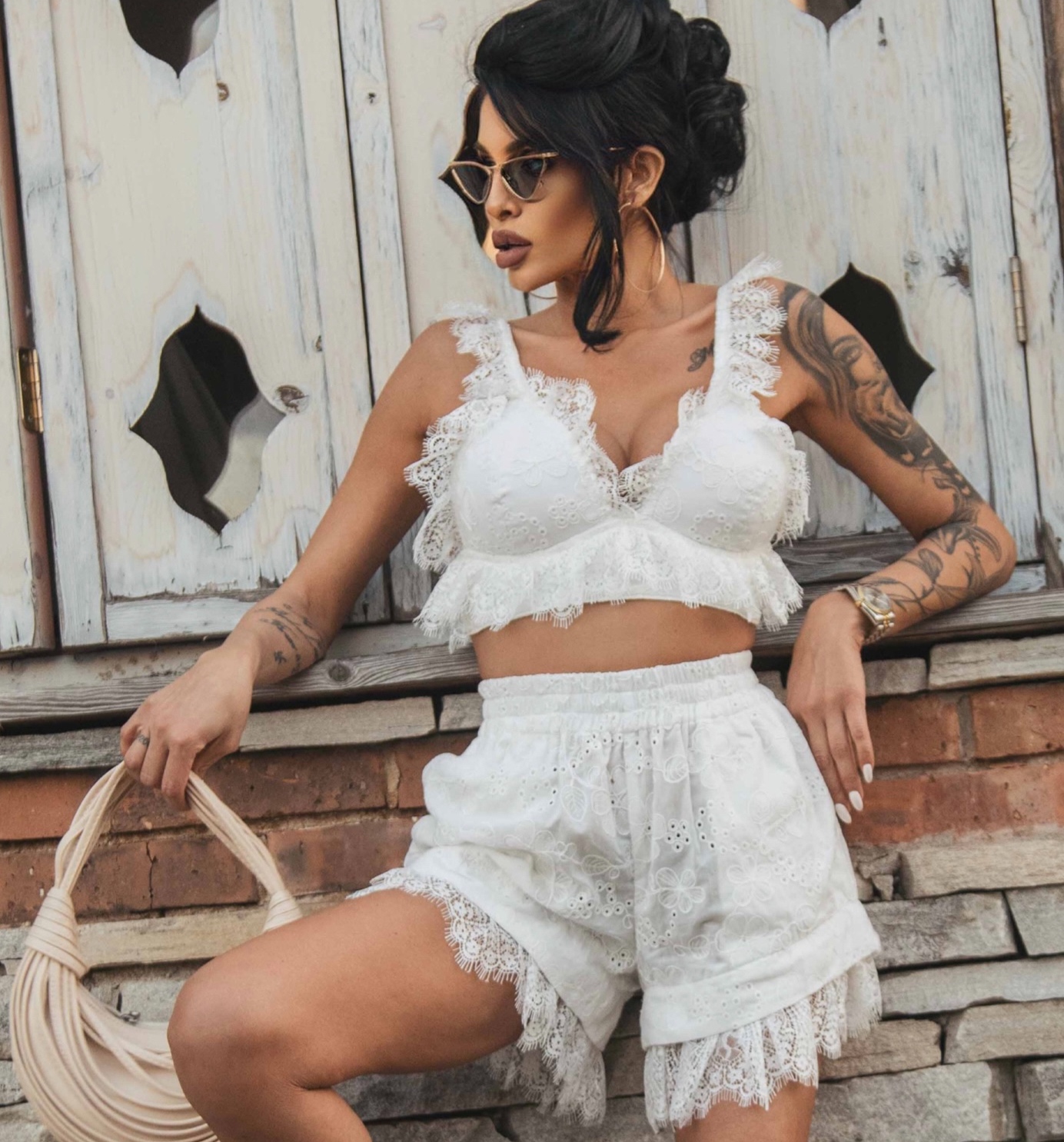 Този елегантен топ е изработен от деликатна бяла дантела, създаваща изискан и романтичен вид. Изящните дантелени акценти по презрамките и краищата придават допълнителна женственост, докато поддържащата структура осигурява комфорт и стил. Идеален за горещите летни дни, този топ може да се комбинира с различни къси панталони или поли за свеж и модерен аутфит.