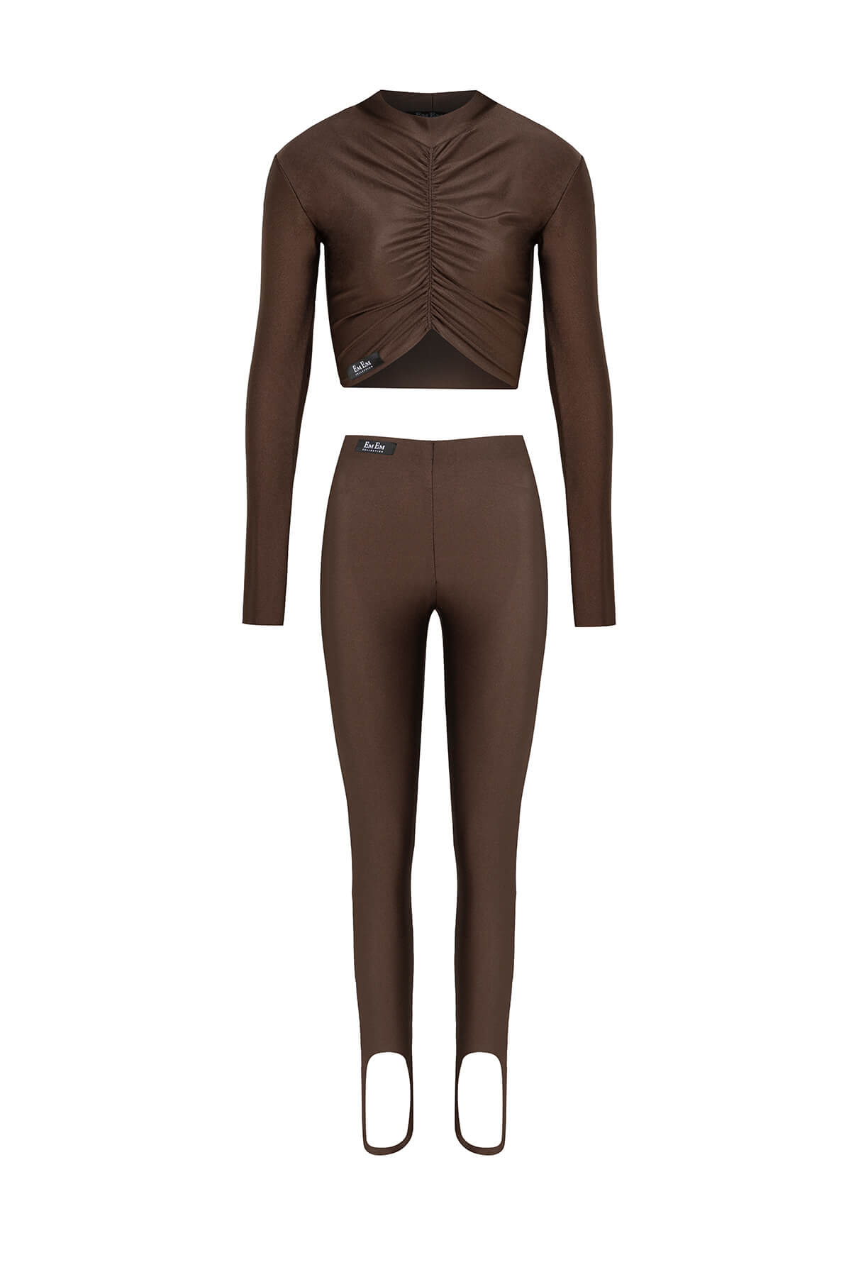 Chocolate Power Set – Ликра Комплект с Ruched Топ и Stirrup Клин | Ем Ем Collection