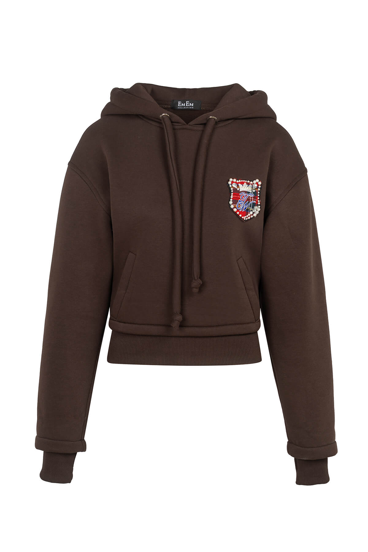 • Дизайн/Детайли: Къса hoodie блуза с качулка и връзки, луксозна heraldic емблема с корона декорирана с перли и кристали, практичен джоб, панталони с регулируема талия, EmEm Collection етикет