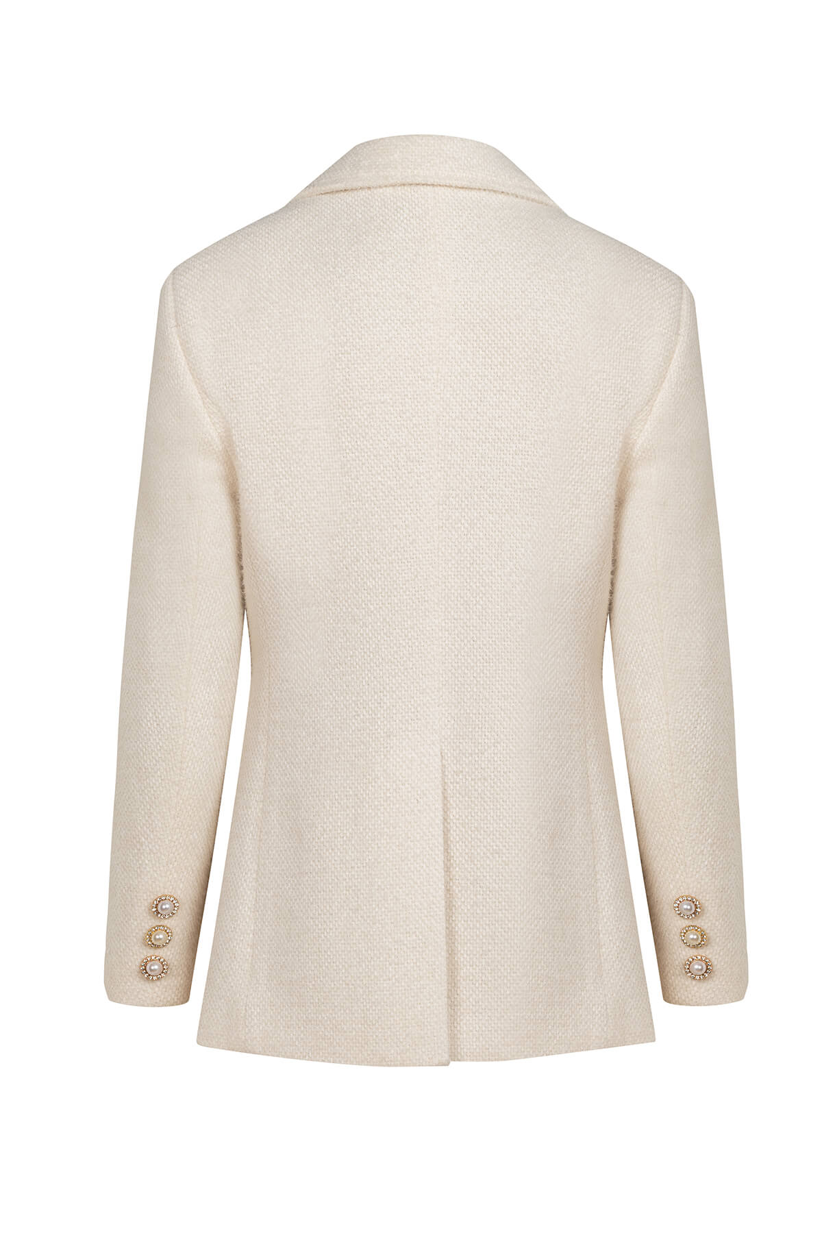 Cream Prestige Blazer е истинско произведение на изтънчения вкус – класическо сако от структурирана текстурирана тъкан в топло ivory, което въплъщава онази рядка комбинация от безвременна елегантност и съвременна увереност. Моделът командва с присъствие още от първия поглед – изграден с прецизност, завършен с детайли, които говорят на езика на истинския лукс.