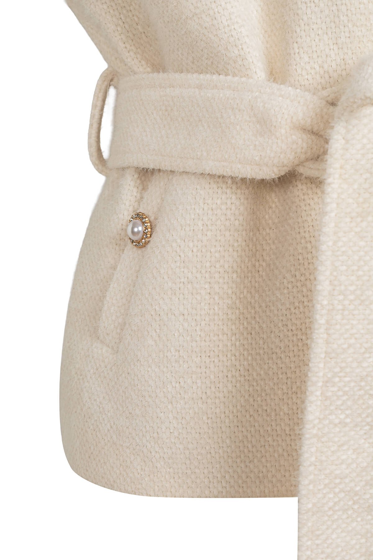 Cream Prestige Vest е въплъщение на изтънчената женска власт – изключителен елек от структурирана текстурирана тъкан в завладяващо топло ivory, който преобразява всяка визия в архитектурно изявление. Този завладяващ модел съчетава строгостта на класическия trench силует с романтичната нежност на перлените детайли, създавайки контраст, който е едновременно властен и неустоимо женствен.