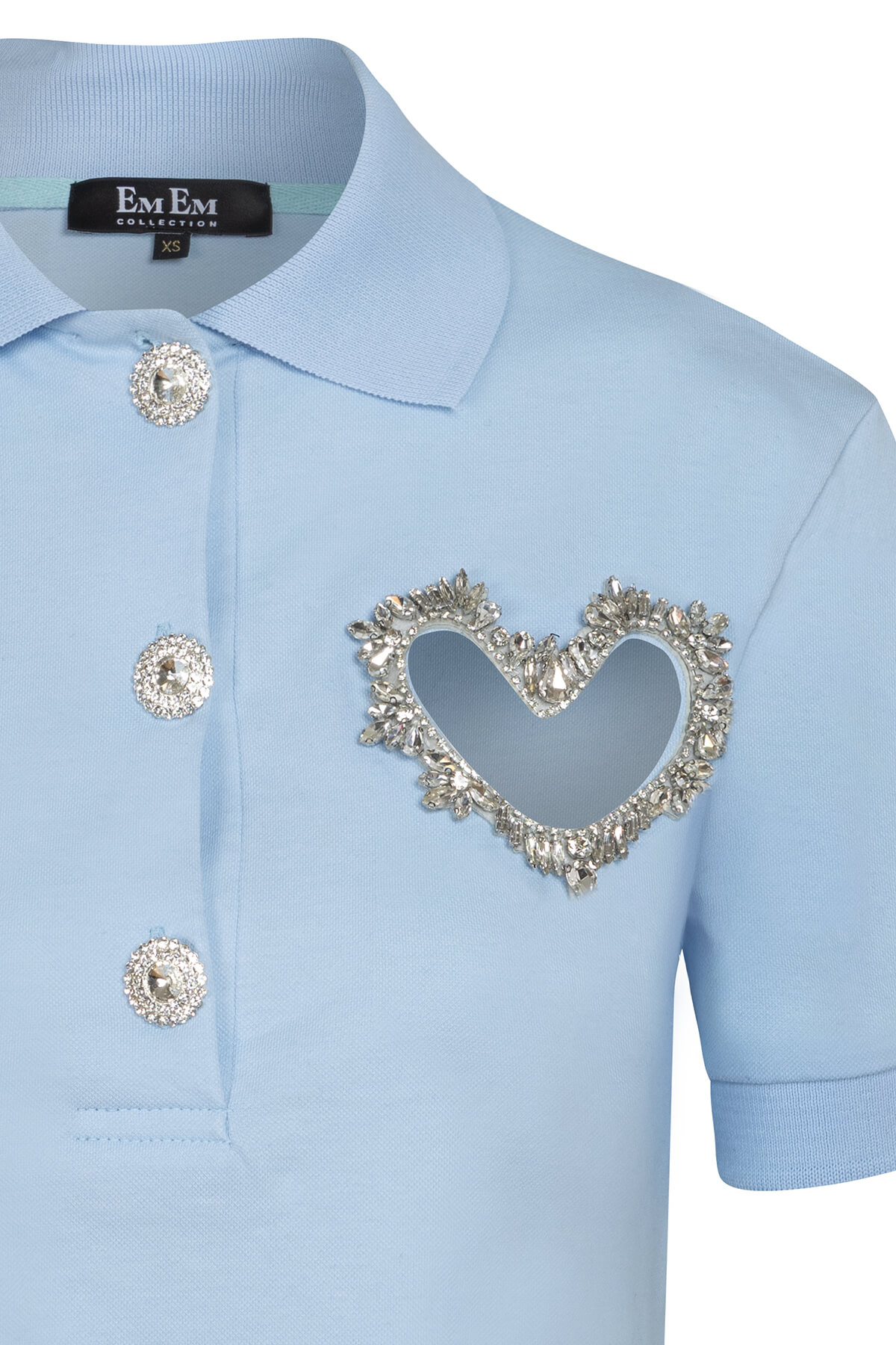 Crystal Heart Polo Sky – Crop Polo Тениска с Кристално Сърце | Ем Ем Collection