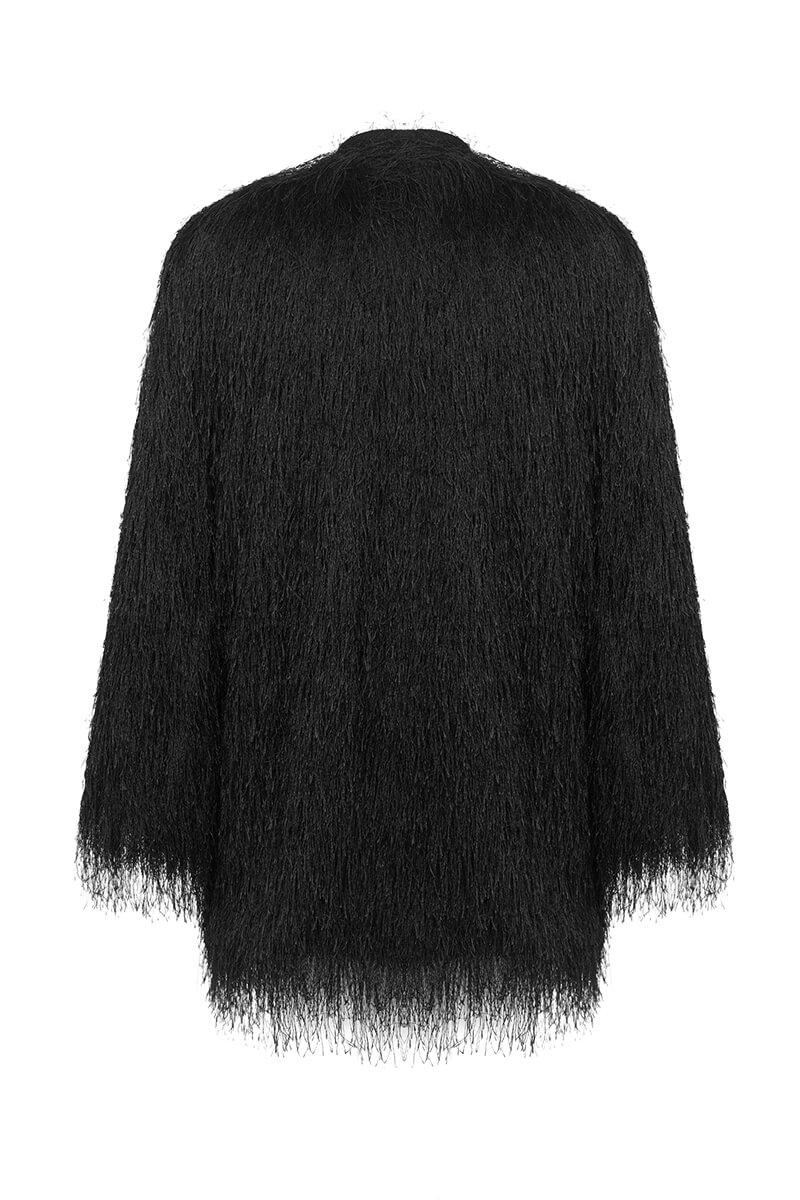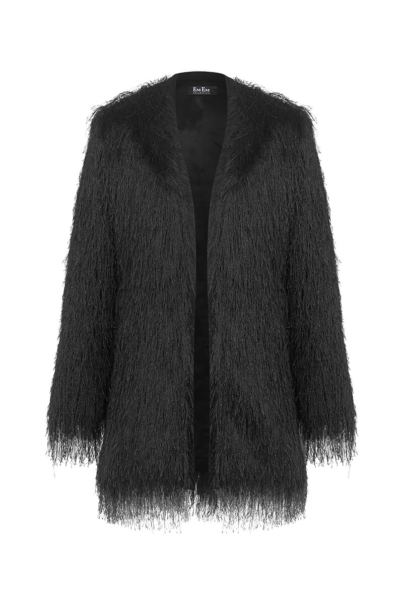Жилетка със силно присъствие, изработена от ефектна дългокосместа материя с луксозна визия. Свободна, падаща линия, която обгръща силуета и добавя драматичен, моден акцент към всяка визия. Перфектна за вечерни излизания, градски лукс и моменти, в които искаш да бъдеш забелязана – без усилие.