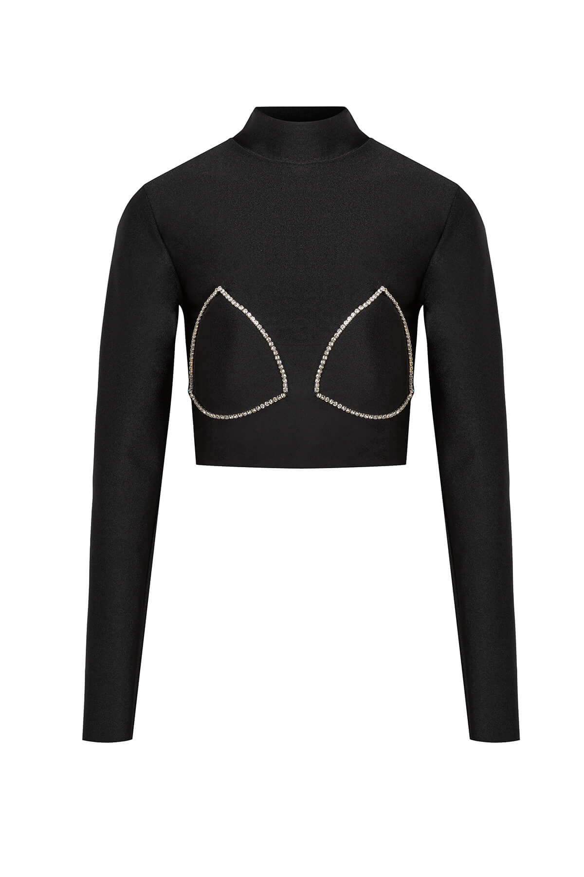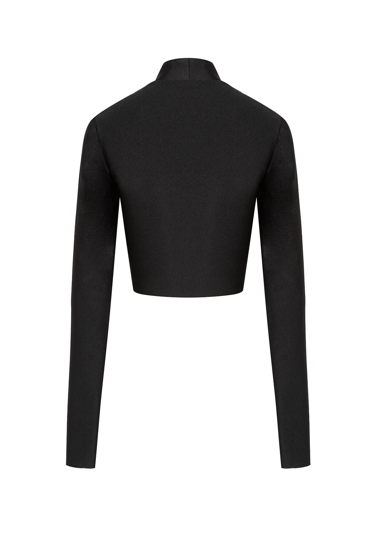 • Дизайн/Детайли: Crop кройка, висока яка тип полуполо, дълги прилепнали ръкави, кристална bra линия с двойни триъгълни cup контури