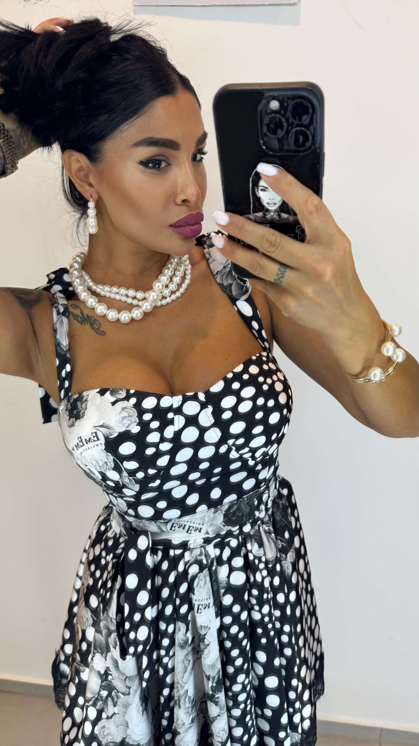 • Цвят: Черен с бели polka dots и флорални мотиви