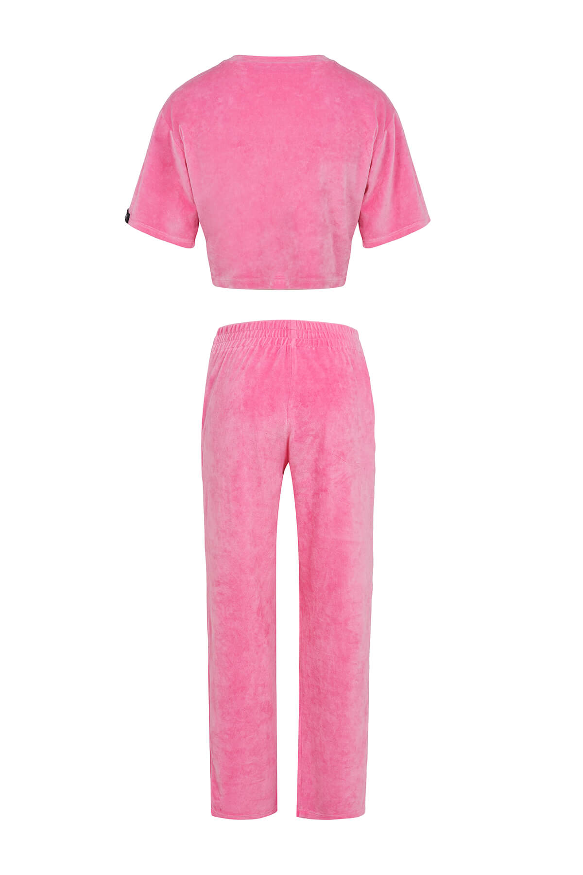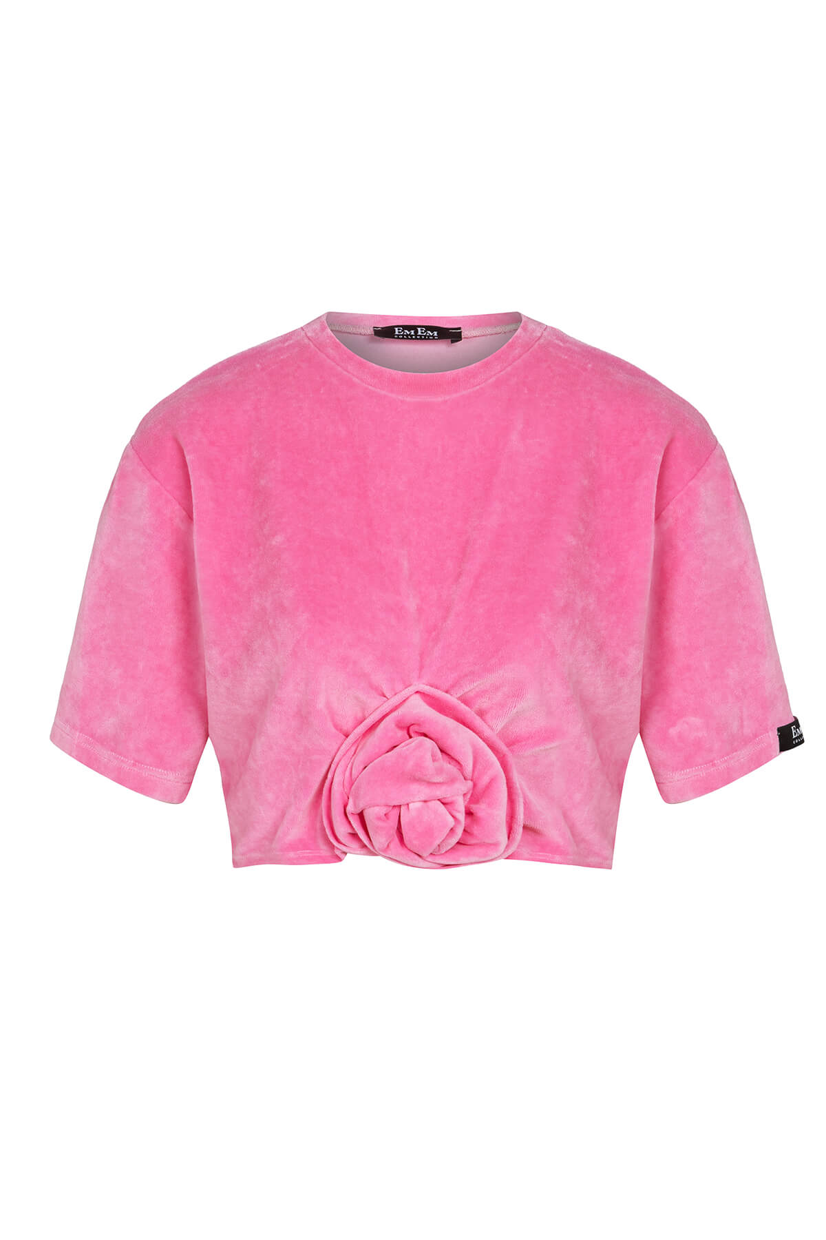 • Дизайн/Детайли: Crop топ с кръгло деколте, къс ръкав, обемна 3D роза от кадифе, Em Em Collection нашивка; прав панталон с висока талия, еластичен колан, Em Em Collection нашивка
