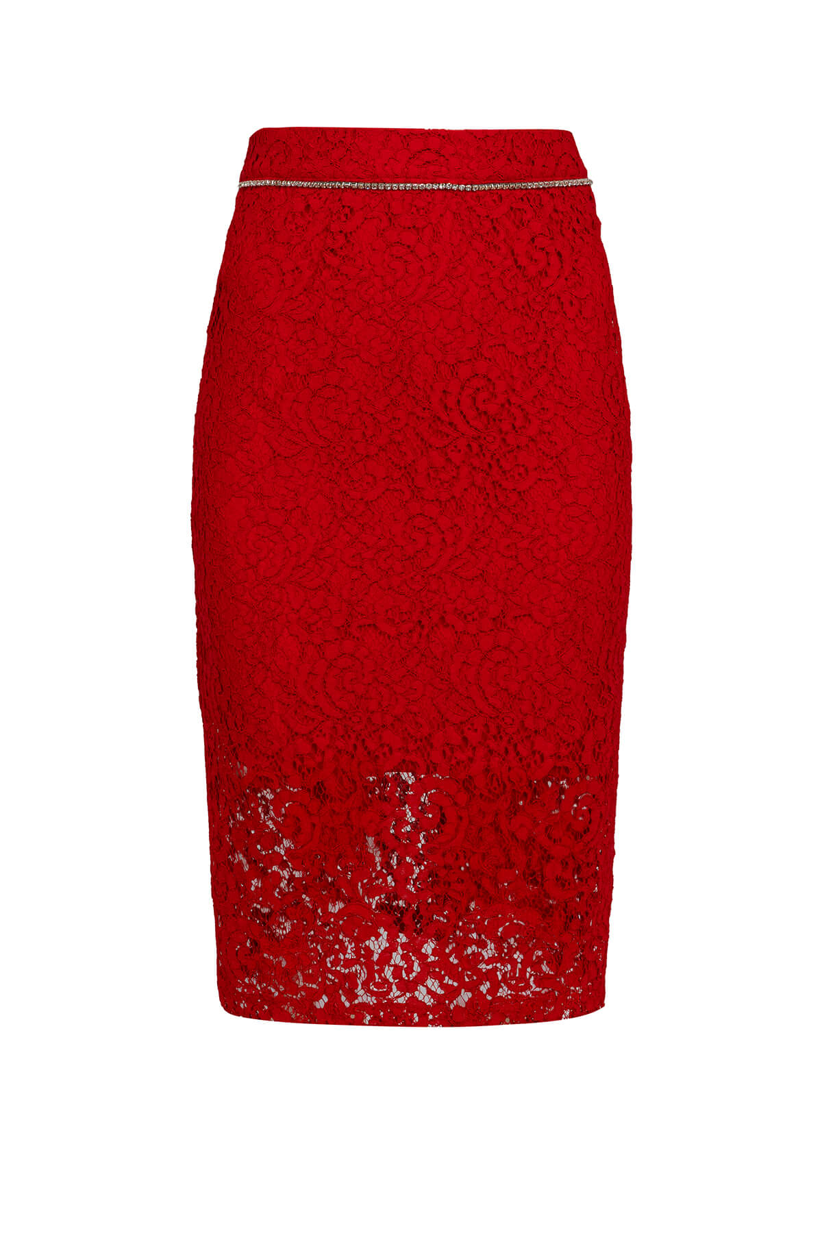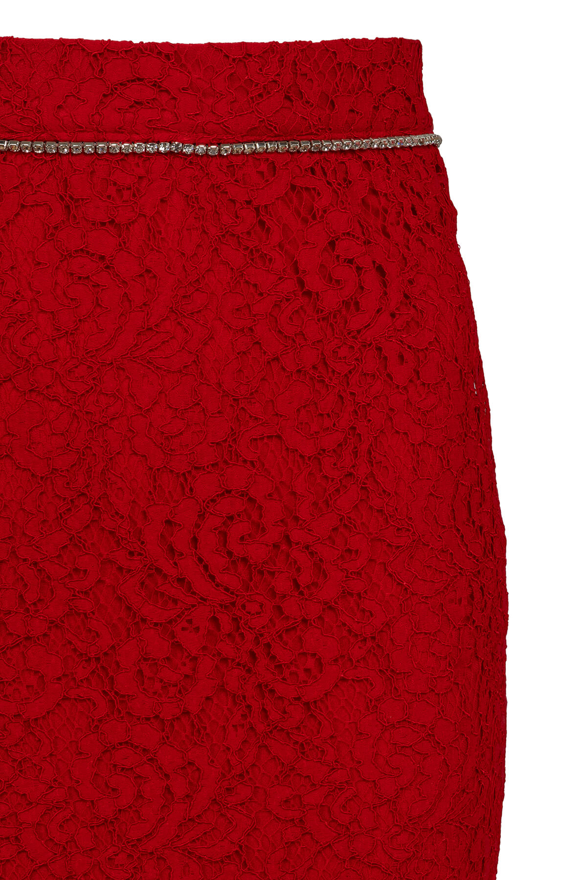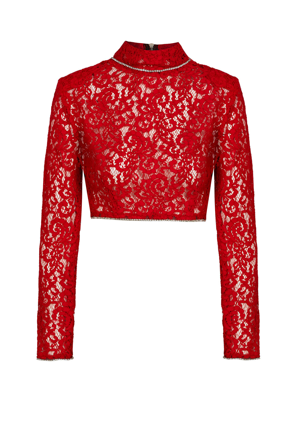 Red Desire Set е символ на страстната женственост и безкомпромисната елегантност – луксозен комплект от две части в наситено червено, изработен от изтънчена дантела с богат флорален мотив върху nude подплата. Този завладяващ модел съчетава дръзката чувственост на червеното с деликатността на дантелата, създавайки визия, която не оставя никого безразличен. Кроп топът е прецизно конструиран с висока яка тип стойка, която рамкира силуета с достойнство и интрига. Кристалната лента, която очертава яката и завършва маншетите на дългите ръкави, добавя искрящ лукс към всяко движение. Прилепналата кройка подчертава талията, докато ципът на гърба завършва детайла с модерна нотка. Midi молив полата продължава историята на комплекта с безупречна последователност – горната част е подплатена за структура и уверена посадка, докато долната се разкрива в прозрачна дантела, която интригува и завладява. Кристалната лента по талията свързва двата елемента в единна, хармонична визия от лукс и желание. Red Desire Set е създаден за жената, която не се извинява за това, че е забележителна – уверена, завладяваща и неустоимо привлекателна във своята женствена сила. Тя не търси погледи, тя ги получава естествено.