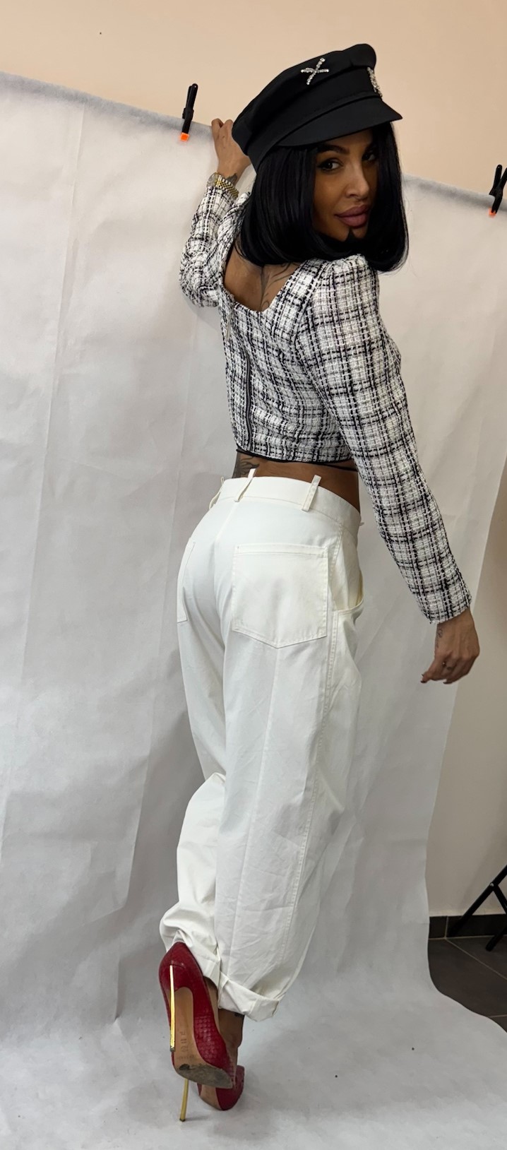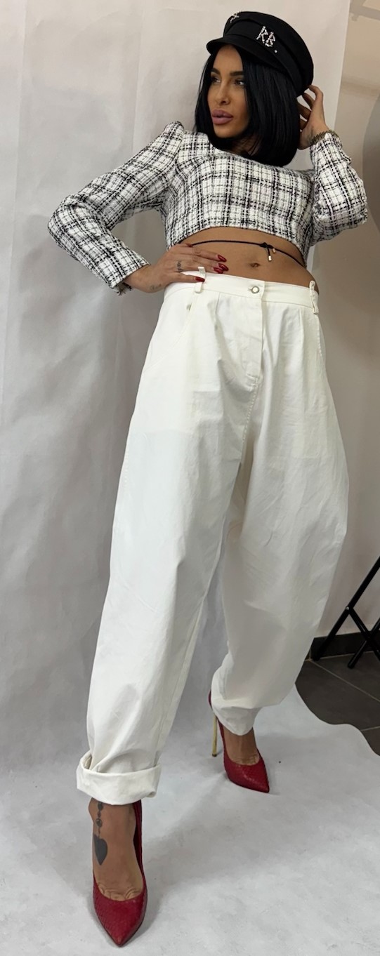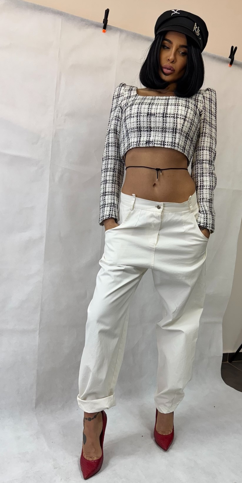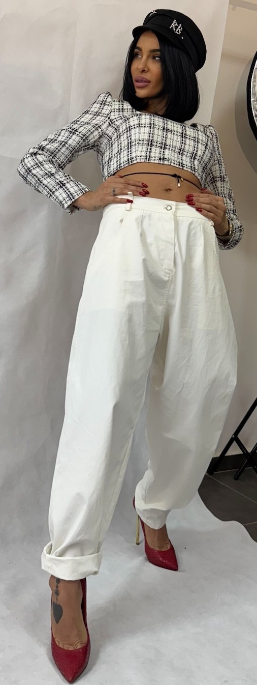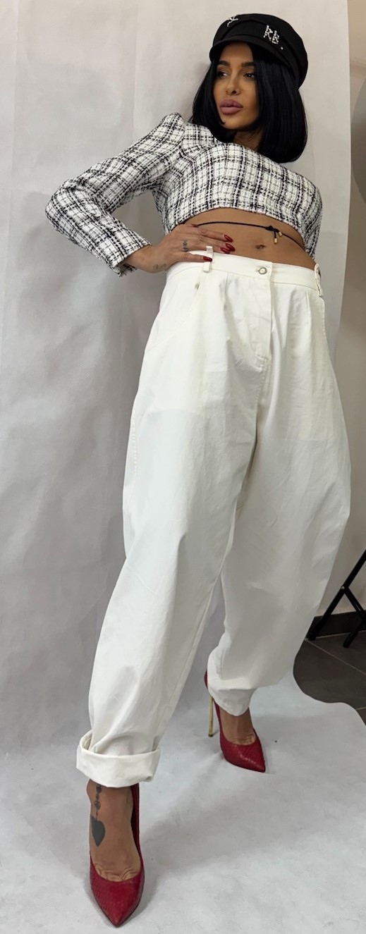 White Revolution: Освободи стила си Готова ли си за революция в гардероба си? Панталонът White Revolution е тук, за да ти даде свободата и стила, от които се нуждаеш. С модерна, широка кройка и класически бял цвят, този панталон е идеален за всяка смела жена, която не се страхува да изрази себе си. Какво прави White Revolution толкова специален? Удобство без компромис: Изработен от висококачествена, дишаща материя, този панталон е създаден за максимален комфорт през целия ден. Универсален стил: White Revolution е идеалното платно за всеки твой тоалет. Комбинирай го с crop top и кецове за небрежен вид или с елегантна блуза и токчета за по-официален повод. Зашеметяващ силует: Широката кройка е не само модерна, но и ласкаеща всяка фигура. Бял цвят – символ на елегантност: Бялото е вечна класика, която никога не излиза от мода. Този панталон ще ти помогне да създадеш стилни и изискани визии. Не чакай! Присъедини се към White Revolution и освободи стила си!
