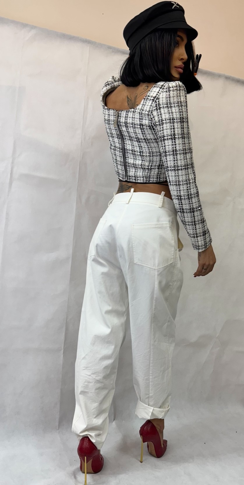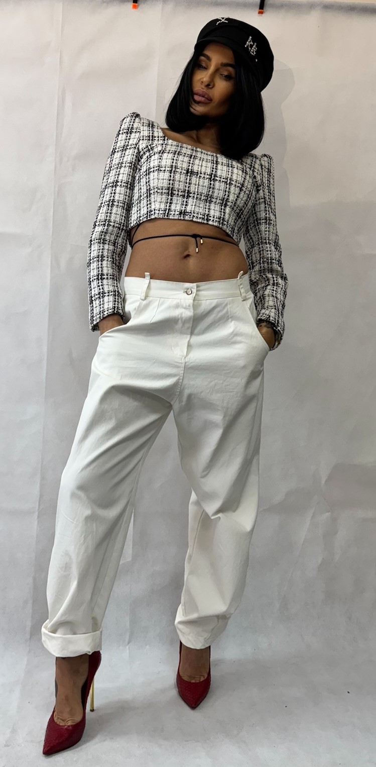 Готова ли си за революция в гардероба си? Панталонът White Revolution е тук, за да ти даде свободата и стила, от които се нуждаеш. С модерна, широка кройка и класически бял цвят, този панталон е идеален за всяка смела жена, която не се страхува да изрази себе си.